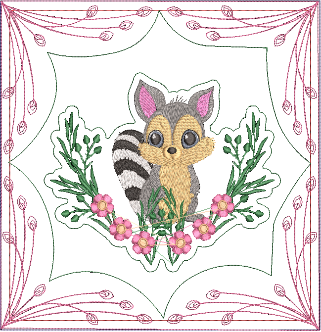 20 x 20cm framed block design with quilting for "Quilt as you go" Stitches 22,160
